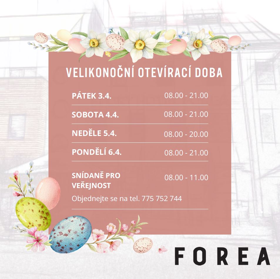 V případě větší skupiny, prosíme o rezervaci předem TEL: +420 777 357 234; EMAIL: recepce@forea.cz